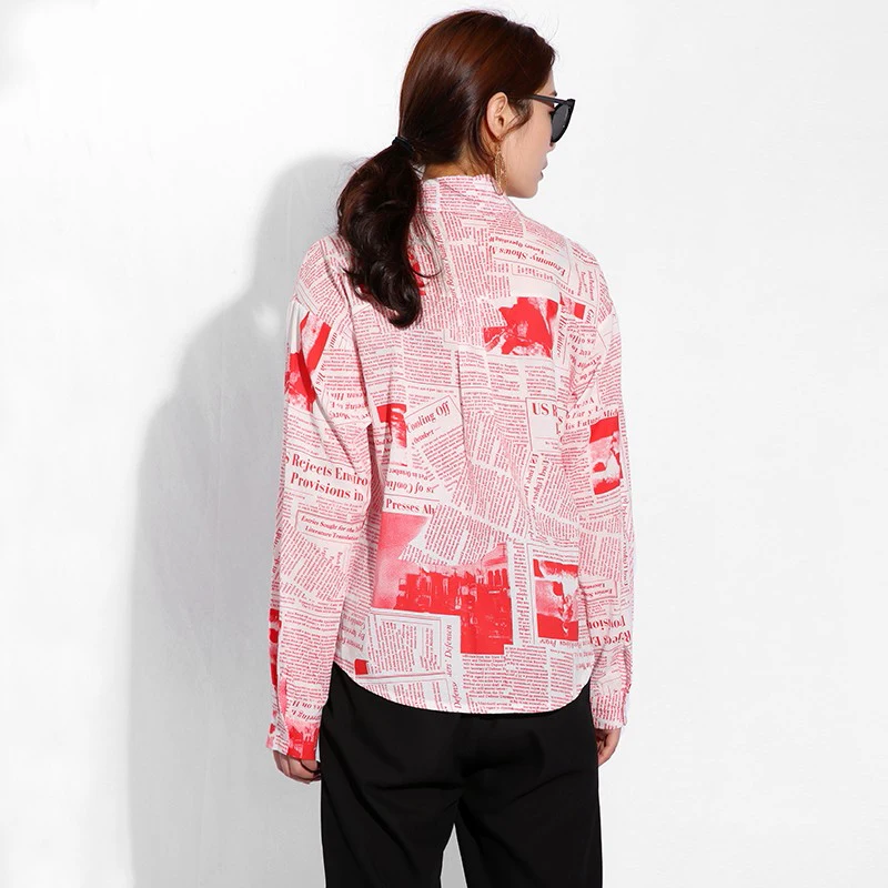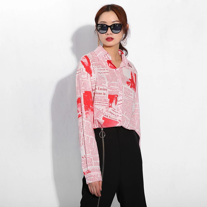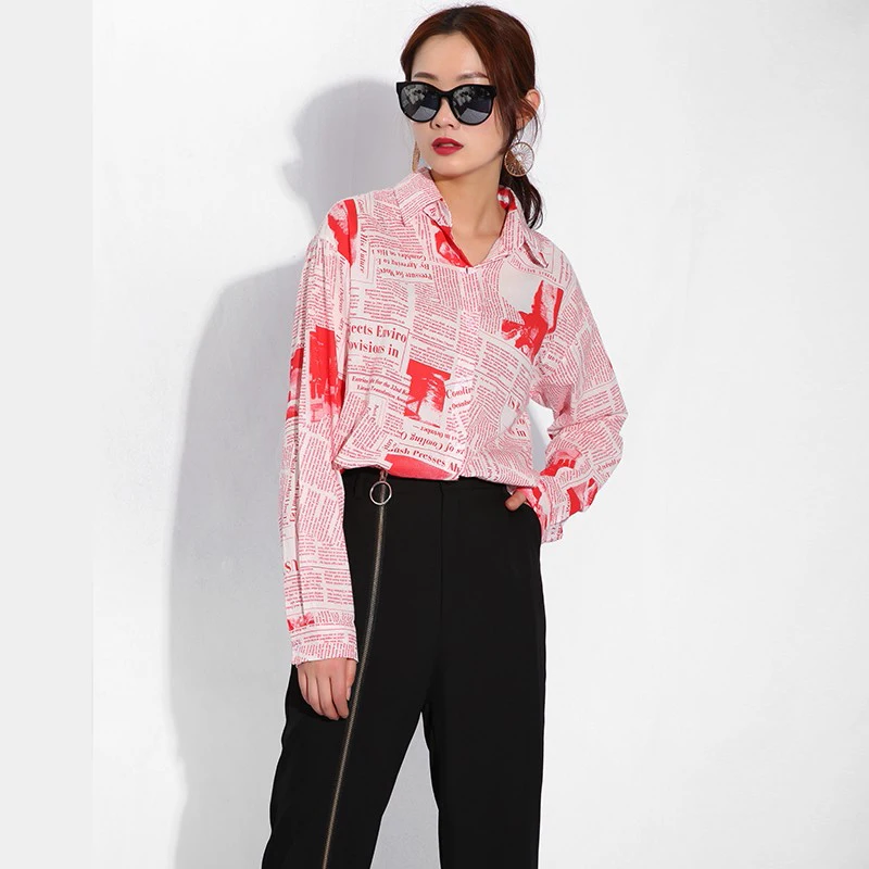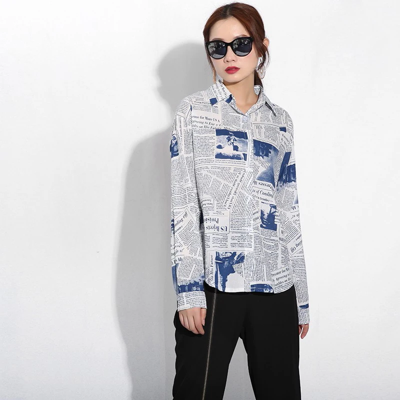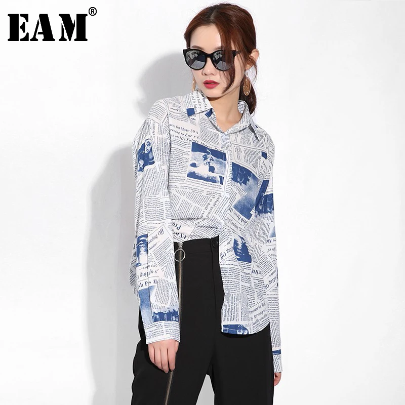 amazing [EAM] 2020 New Autumn Winter Lapel Long Sleeve Pattern Printed Loose Big Size Personality Shirt Wom