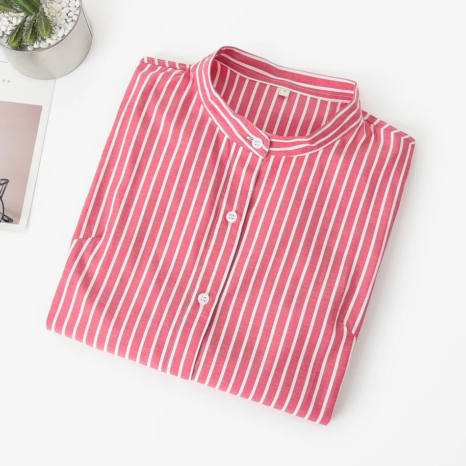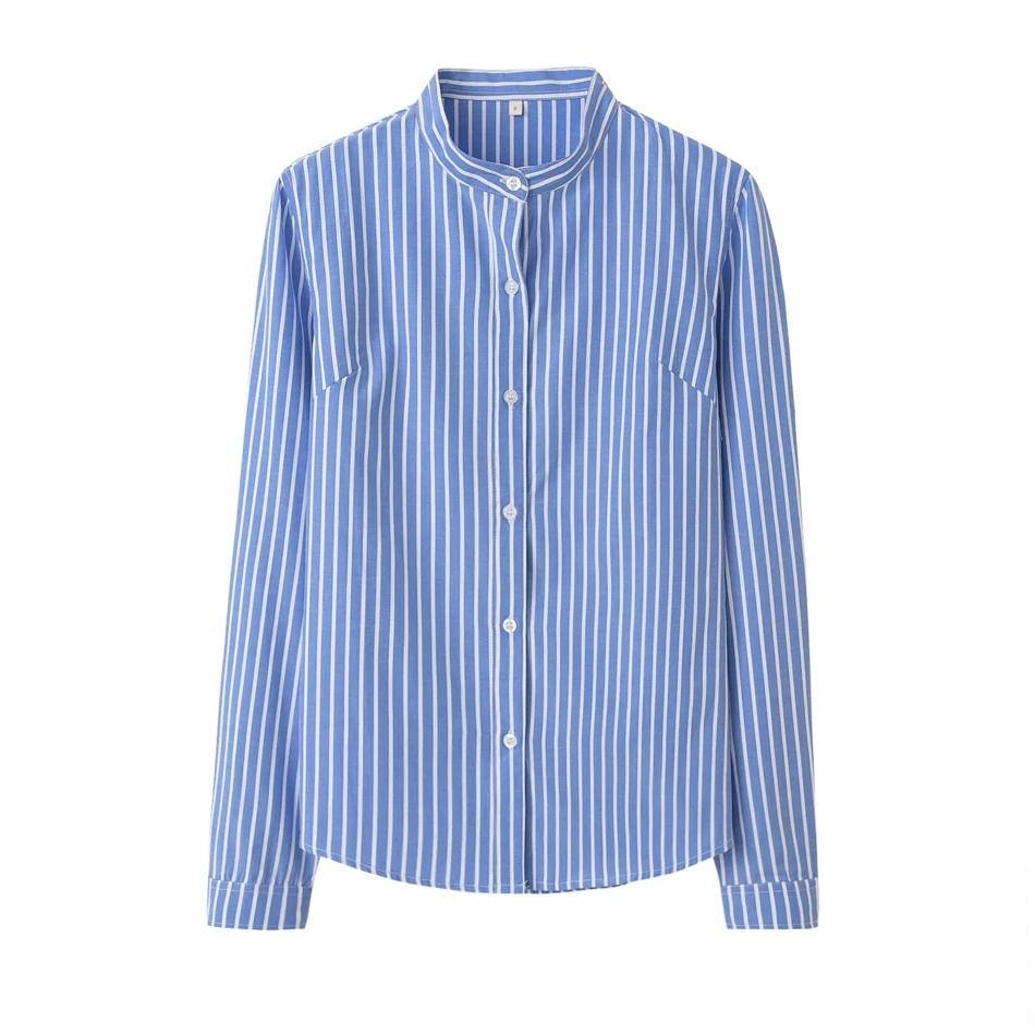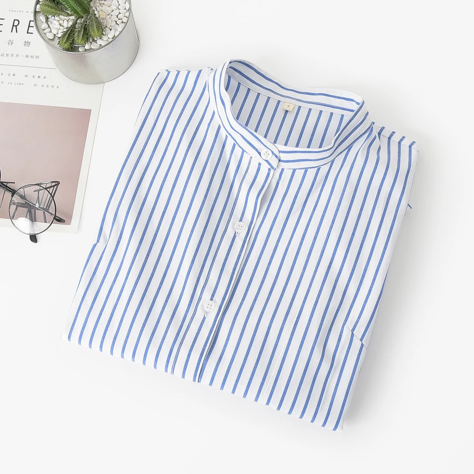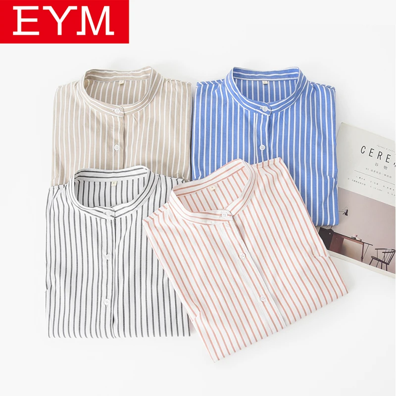 price cut EYM Brand 2019 New Women Blouses Simple Casual Striped Stand Long Sleeve Shirts Female Plus Size Bl