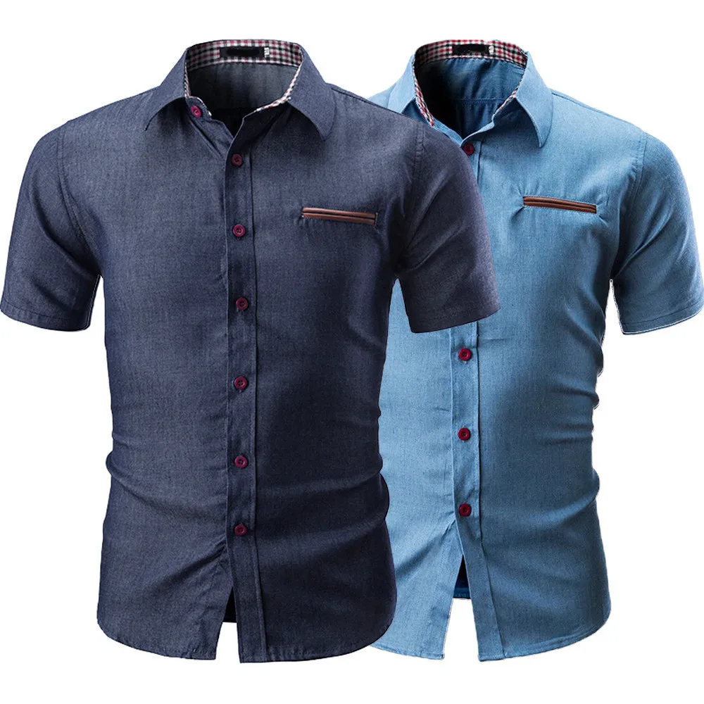discount Summer Men Casual Short Sleeve Shirt Chemise Homme Solid Color Business Slim Fit Office Shirt Blous