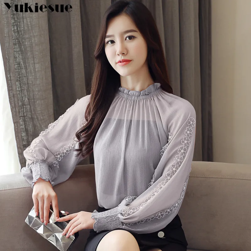 2019 summer woman top blusa mujer lace chiffon blouse women shirt long sleeve womens tops and blouses ladies plus size,Chiffon Blouse New Women Tops Long Sleeve Stand Neck Work Wear Shirts Elegant Lady Casual Blouses women's blusas Plus size, Chiffon Blouse New Women Tops Long Sleeve Stand Neck Work Wear Shirts Elegant Lady Casual Blouses women's blusas Plus size