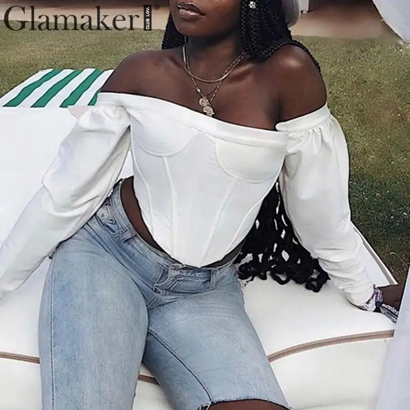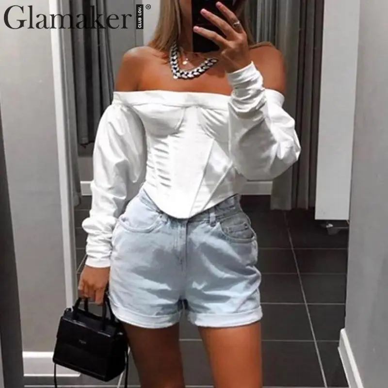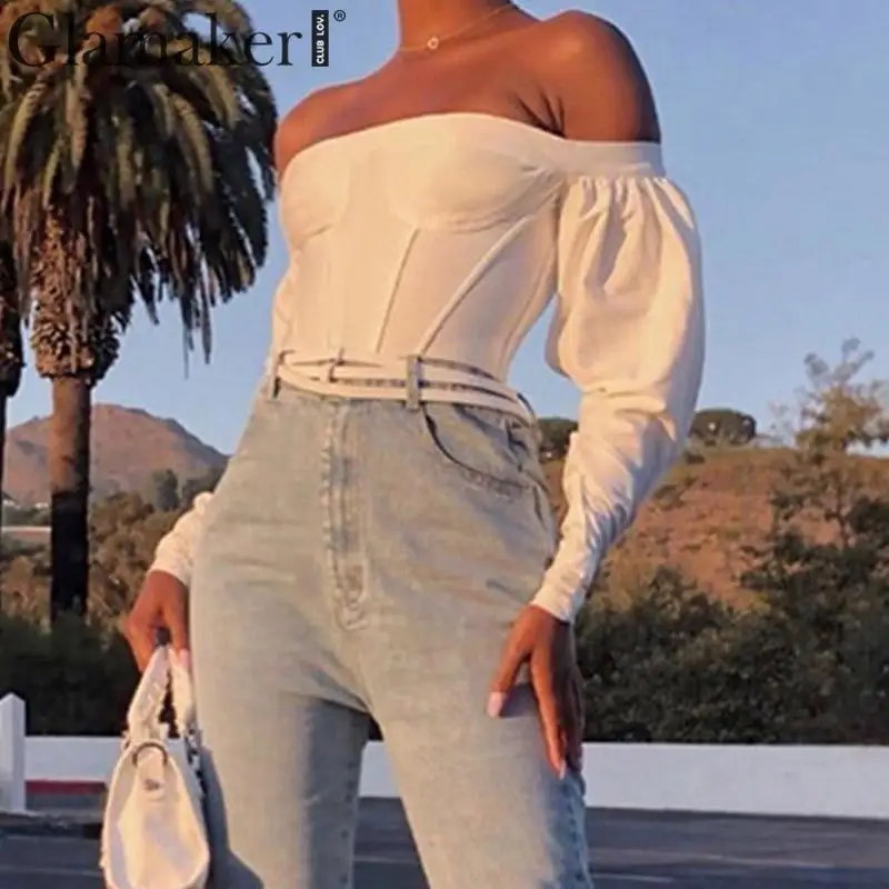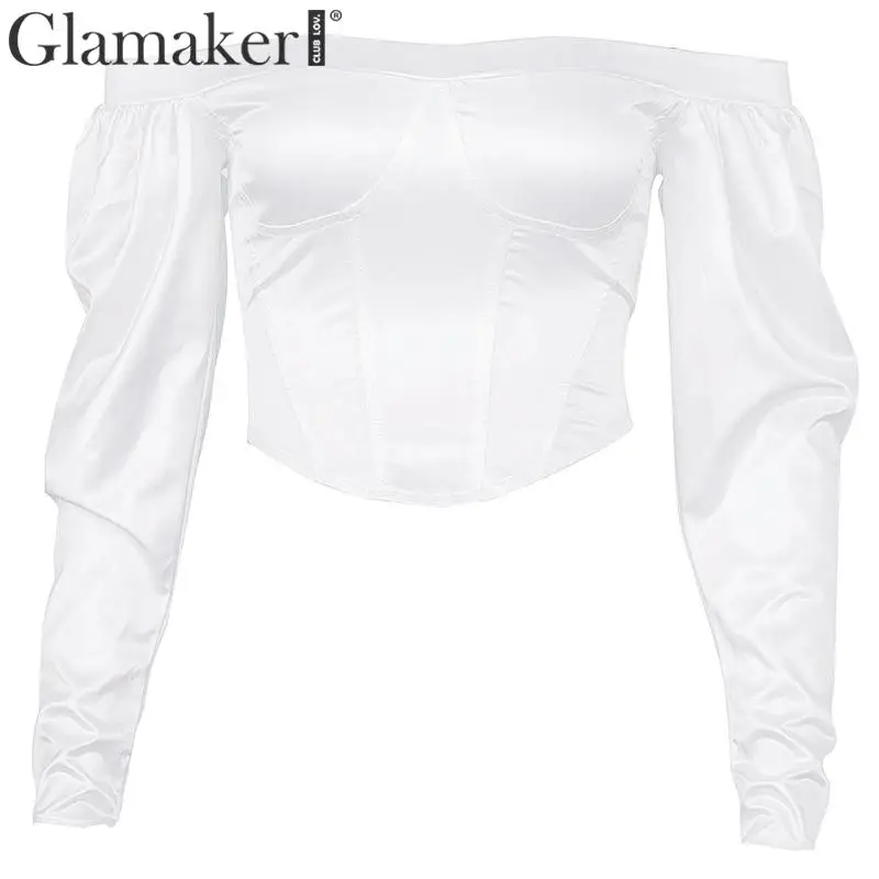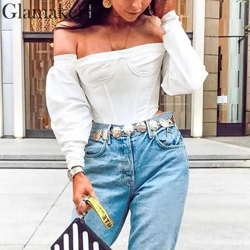 Best Glamaker Vintage off shoulder white blouse Elegant long puff sleeve women blouse Female autumn wint