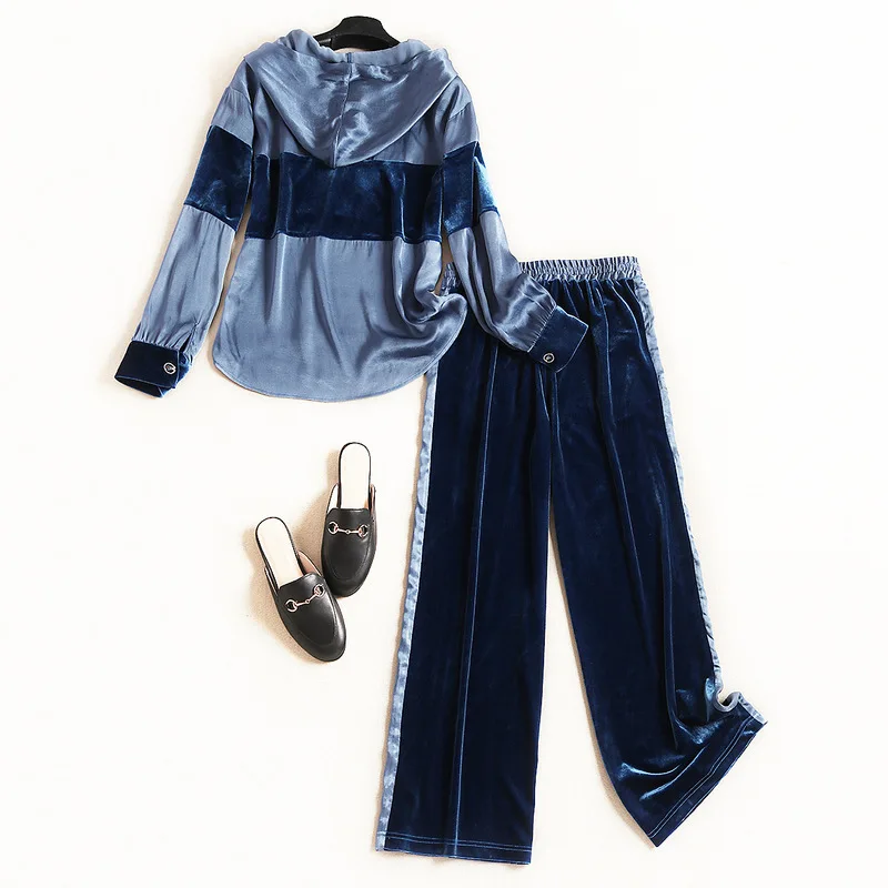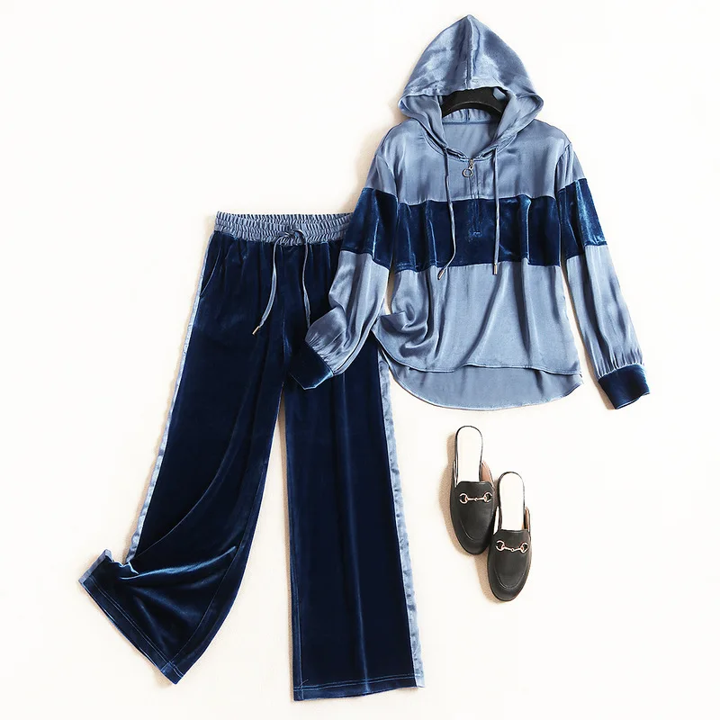 High Quality Autumn Casual Women Velvet Sets Hollow Out Zipper Jacket and Elastic Waist Wide Leg Long Pants Black Pink Suit,Spring Women's Two Pieces Suit Set Patchwork Long Sleeve Hooded Top & Elastic Wide Leg Pants Cotton Linen Tracksuit, Spring Women's Two Pieces Suit Set Patchwork Long Sleeve Hooded Top & Elastic Wide Leg Pants Cotton Linen Tracksuit