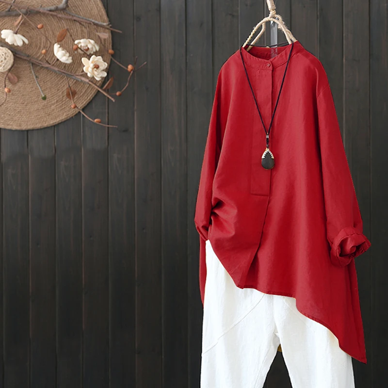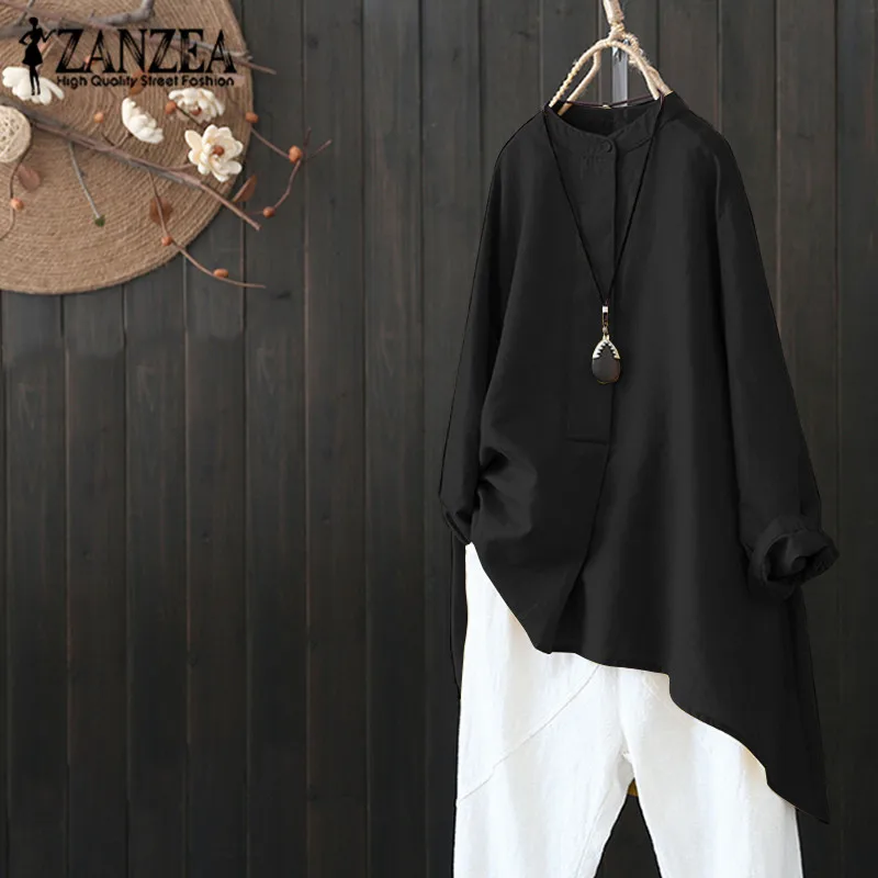 buy ZANZEA Spring Women Long Sleeve Solid Top Casual Irregular Hem Shirt Loose Cotton Linen Blouse Femi