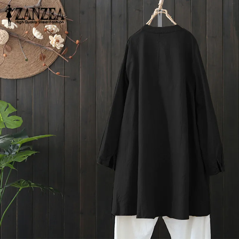 amazing ZANZEA Spring Women Long Sleeve Solid Top Casual Irregular Hem Shirt Loose Cotton Linen Blouse Femi