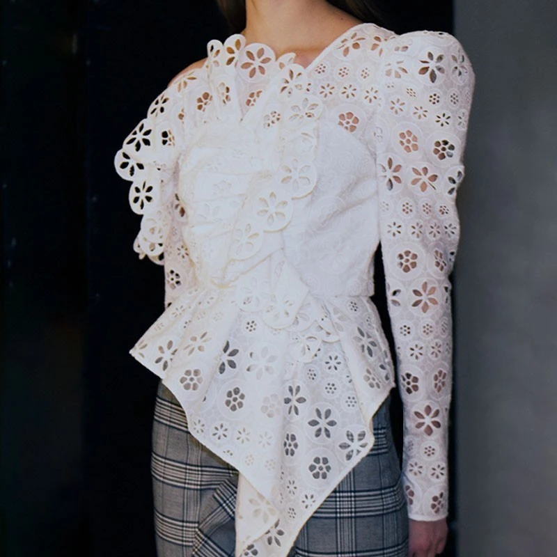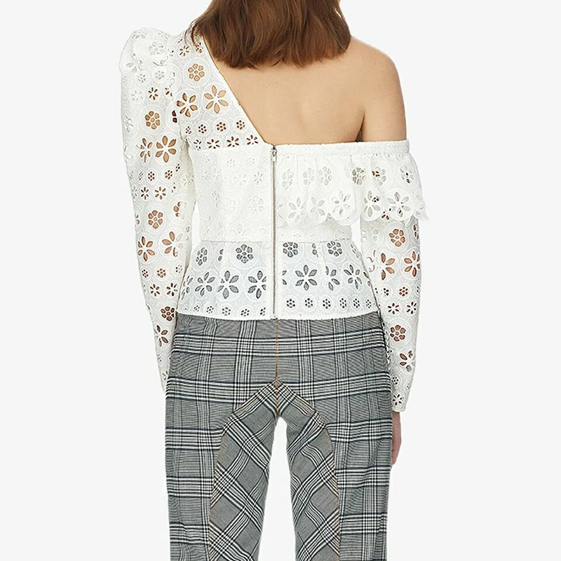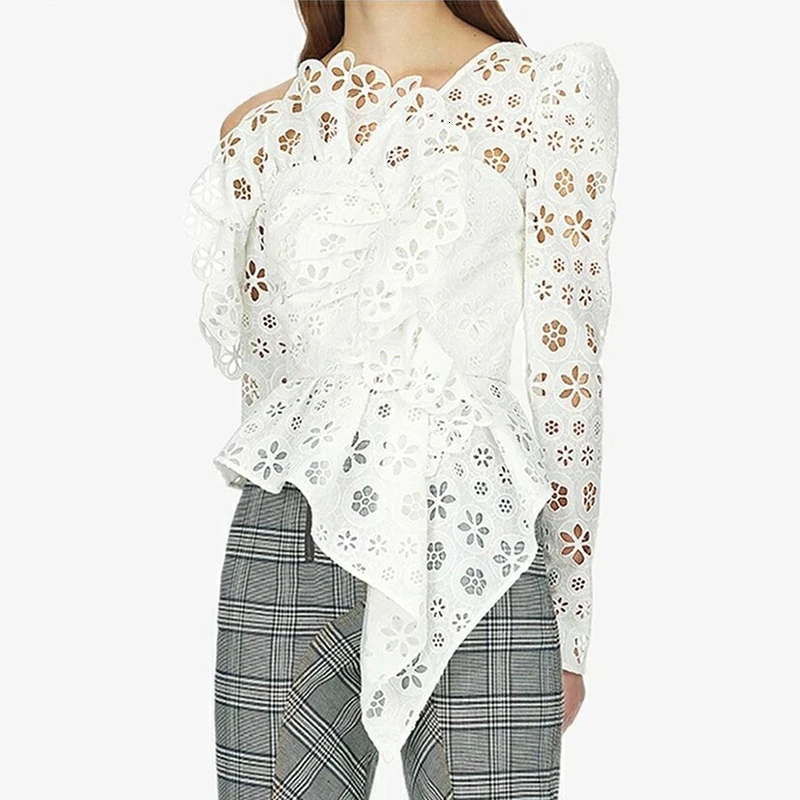 Finest TWOTWINSTYLE 2019 Summer Streetwear Off Shoulder Top Ruffle Floral Lace Long Sleeve Sexy Ladies Blo