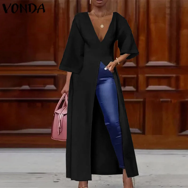 Finest VONDA Women Sexy V Neck Split Hem Long Shirts Cocktail Party Sexy Dress OL Office Long Blouses Fema