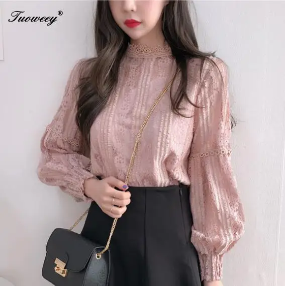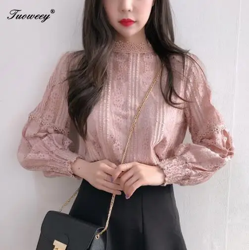 price cut 2019 Women blouse Hollow out sexy Lace Tops Ladies blusas femininas elegante Lantern sleeve Casual
