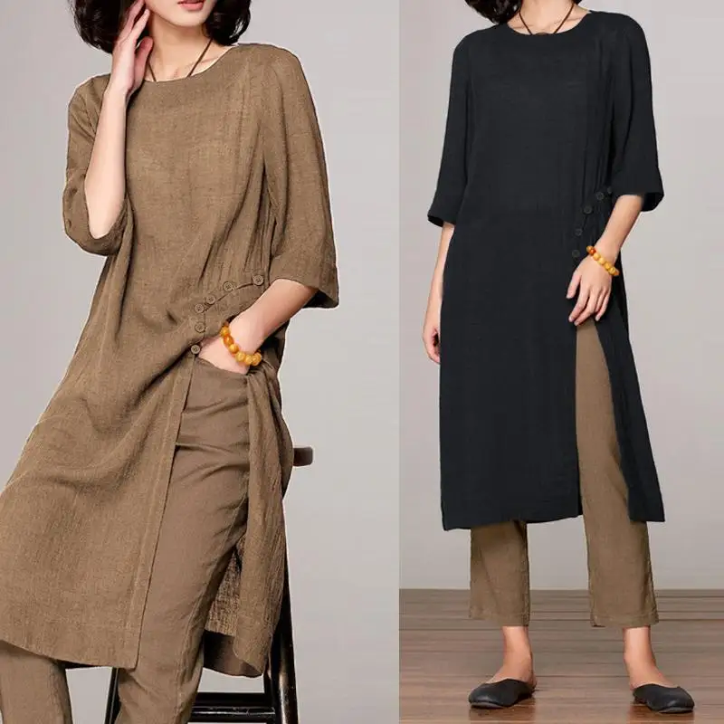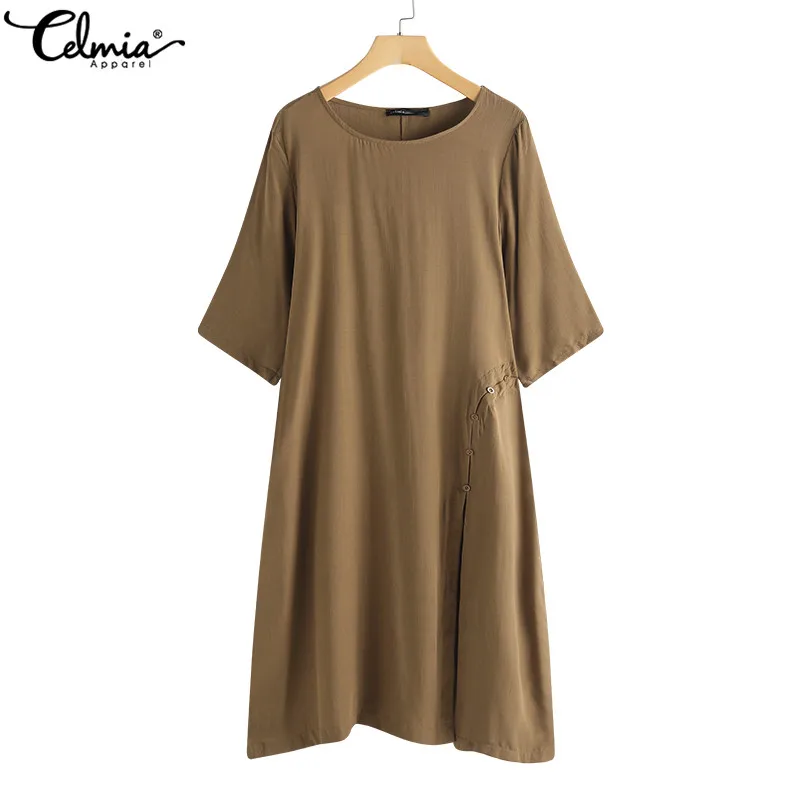 low cost S-5XL Celmia 2019 Summer Women Blouses Vintage Linen Tops Half Sleeve Loose Split Long Shirts Casua