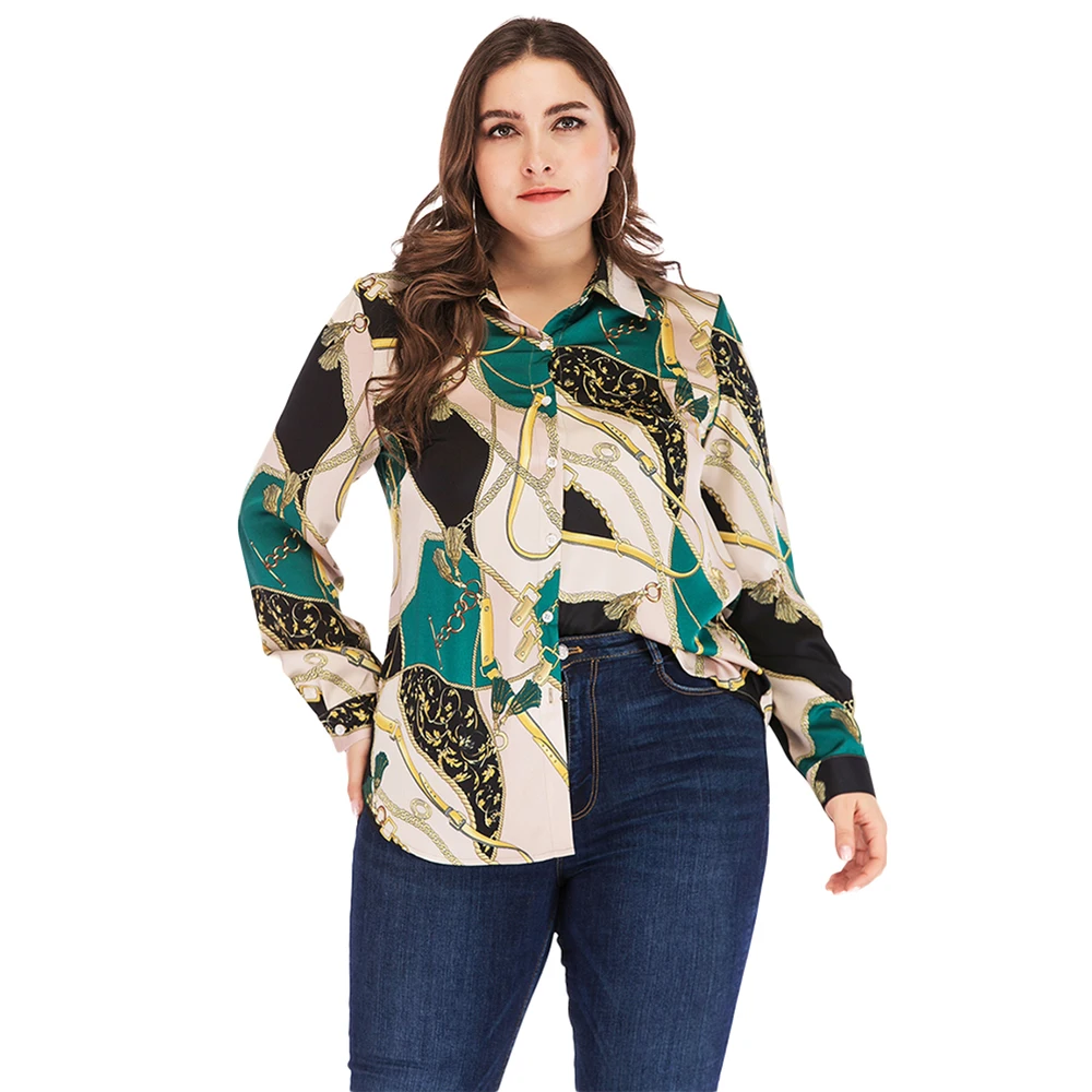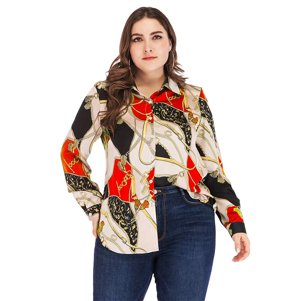 price cut Women Plus Size Blouse Geometric Printed Blusas Fashion Vintage Blouse Tops Long Sleeve camisas muj
