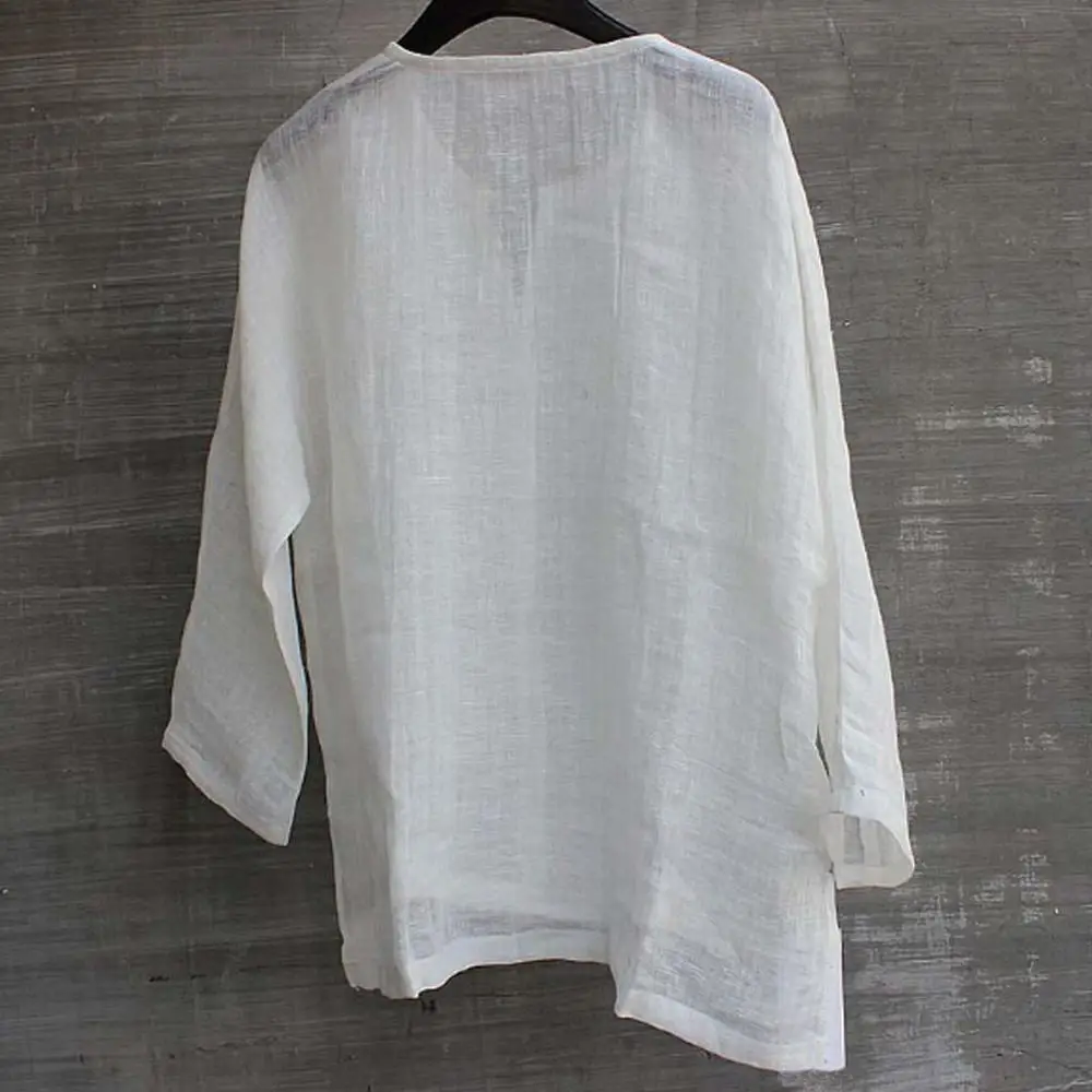 Most effective Summer Male Shirt Cotton Linen Mens Thin Brief Breathable Comfy Solid Color Long Sleeve Loose Casua