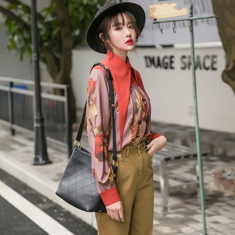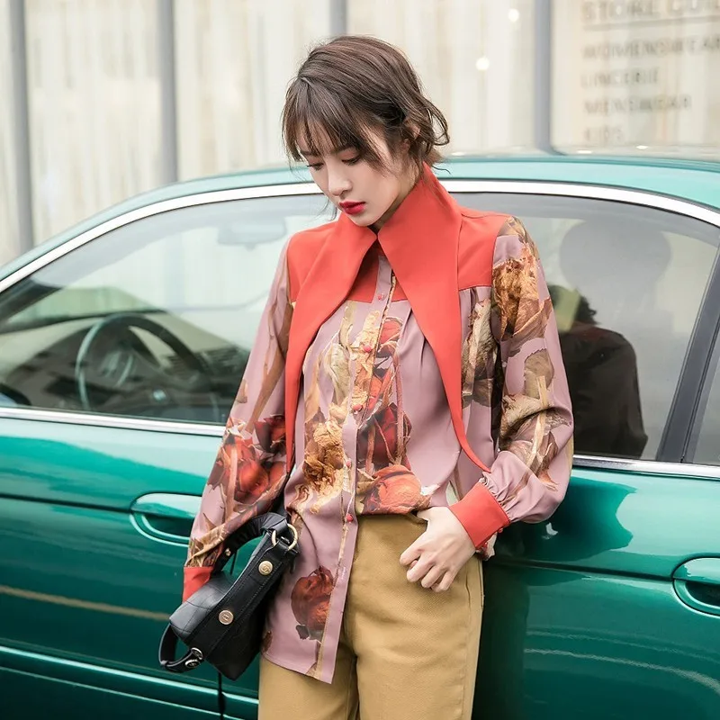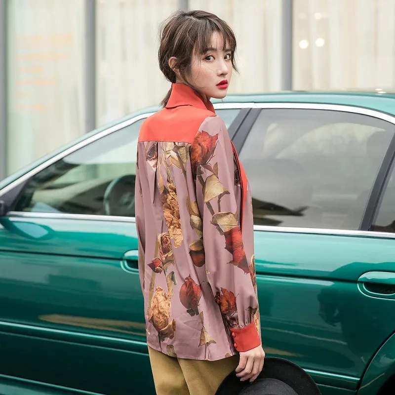 GALCAUR Patchwork Women's Shirts Lapel Collar Single Breasted Lantern Long Sleeve Shirt Blouse Female 2019 Autumn Fashion New,GALCAUR Vintage Pink Print Asymmetrical Women's Blouse Lapel Collar Long Sleeve Autumn Elegant Shirt For Female Fashion 2019 New, GALCAUR Vintage Pink Print Asymmetrical Women's Blouse Lapel Collar Long Sleeve Autumn Elegant Shirt For Female Fashion 2019 New