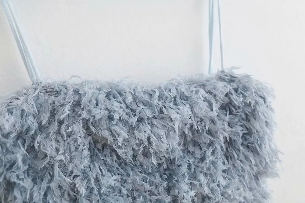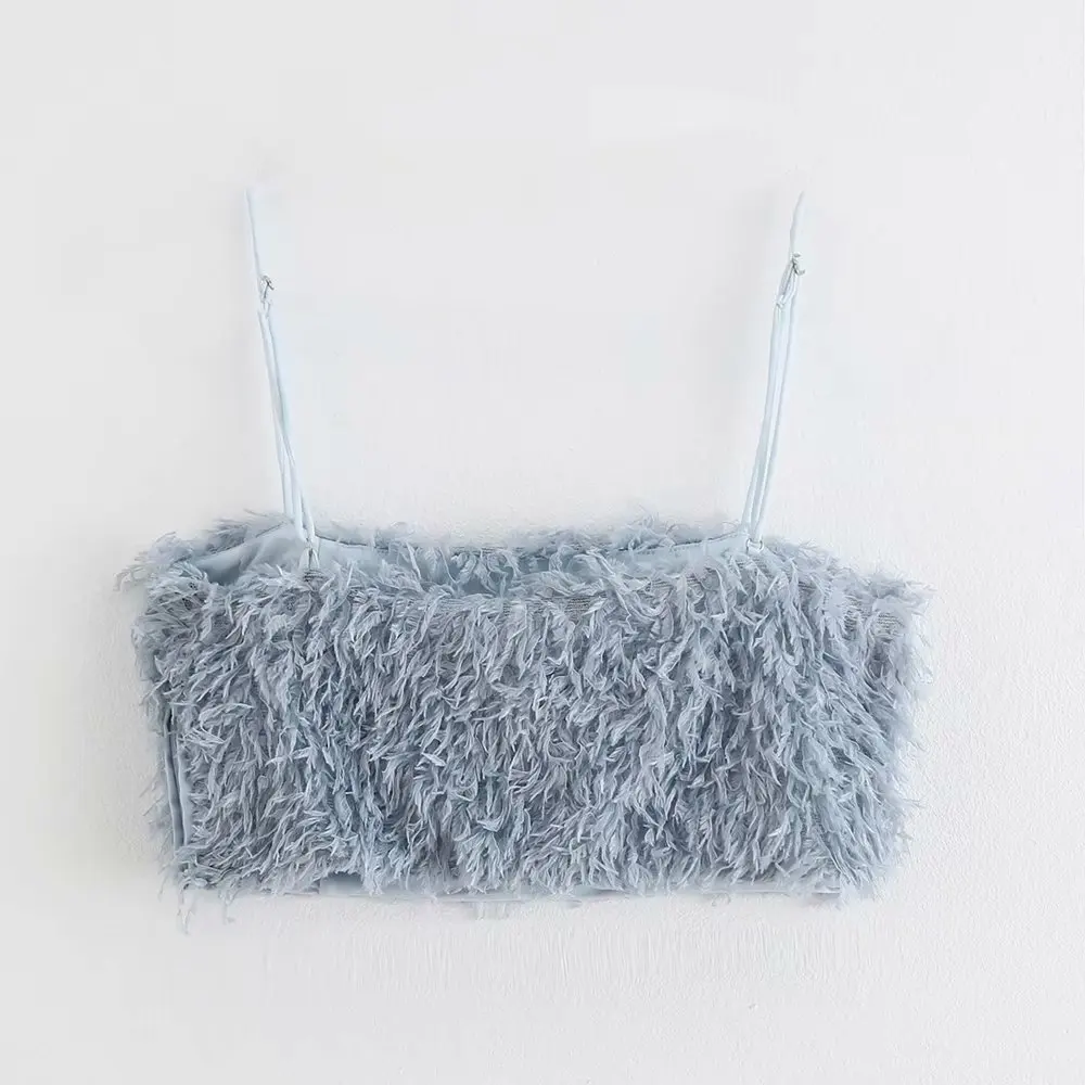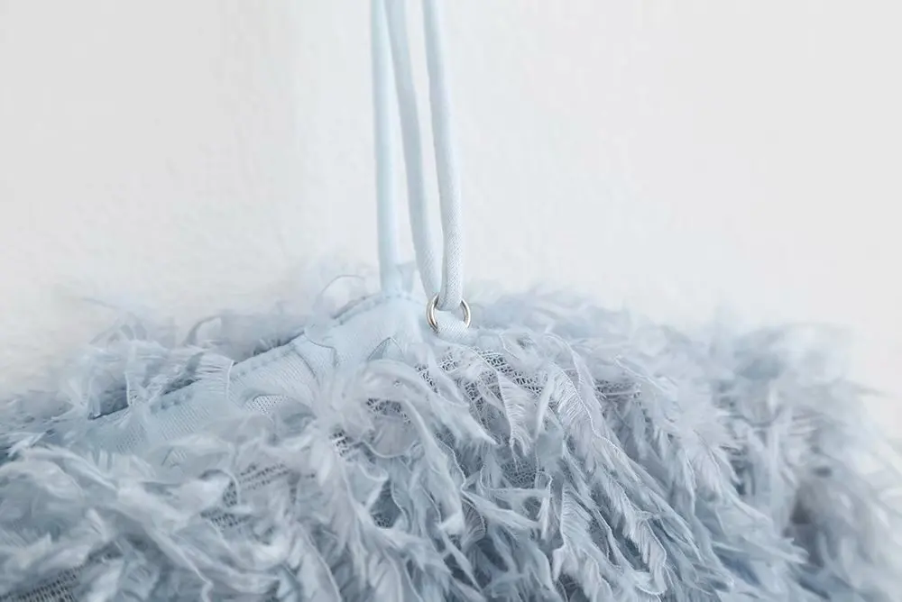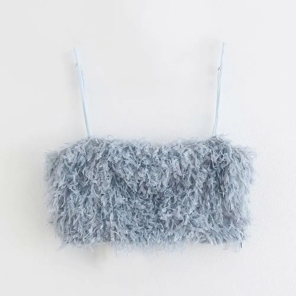 New 2019 women fashion solid color feathers decoration short sling blouse shirt women chic crop feminin
