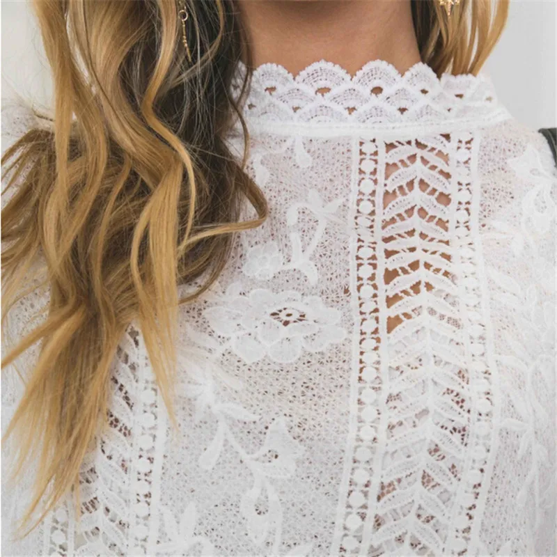 remarkable hirigin women ladies blouse long sleeve white Lace hollow turtleneck blouse Top Summer Blouses Cap