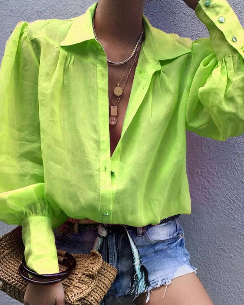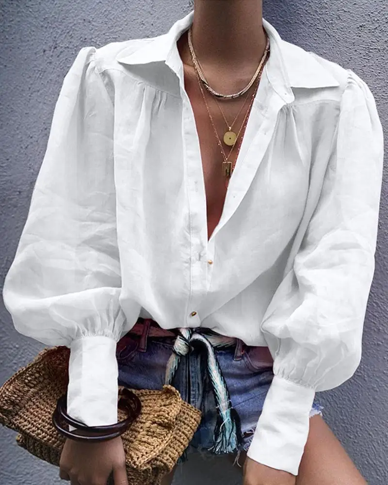 remarkable Ladies Office Lantern Sleeve Casual Shirt Workwear Women Solid Long Sleeve Autumn Shirt Blouse