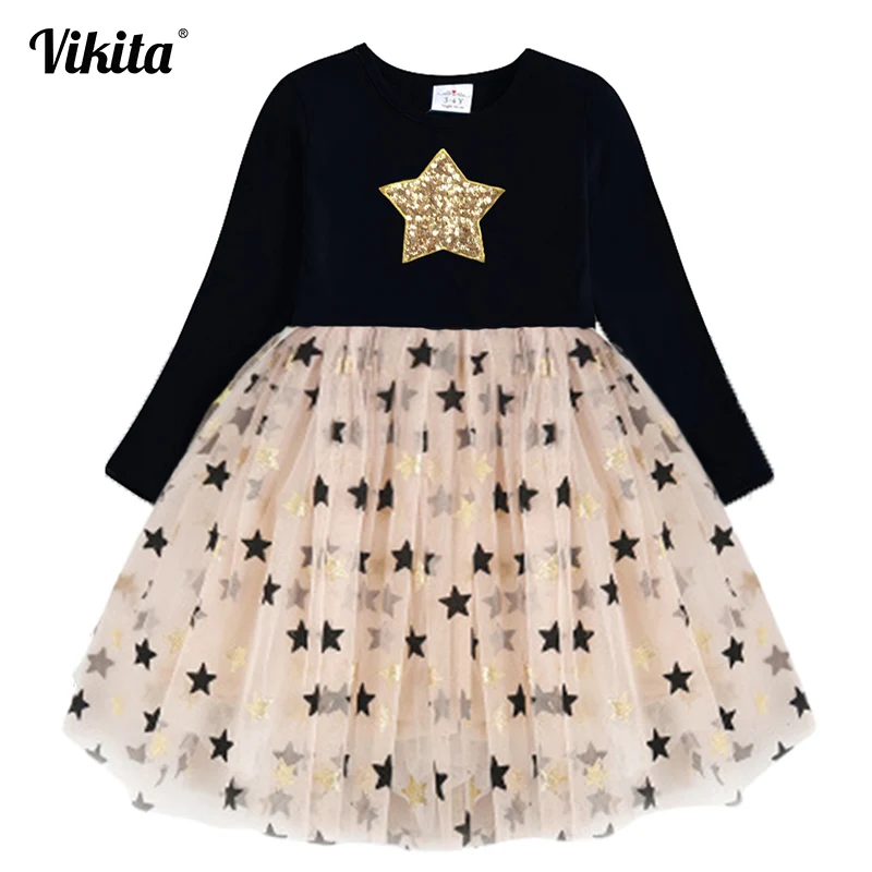 remarkable Kids Autumn Winter Dresses for Girls Star Sequins Princess Dress Girls Long Sleeve Party Vestidos B