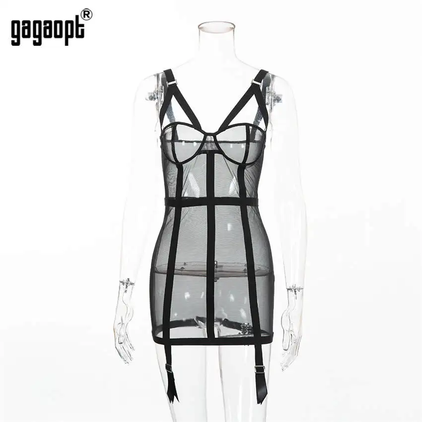discounted Gagaopt 2019 Mesh Dress Women Sexy Dresses Perspective Black Fashion Mini Bodycon Dresses Club Vest