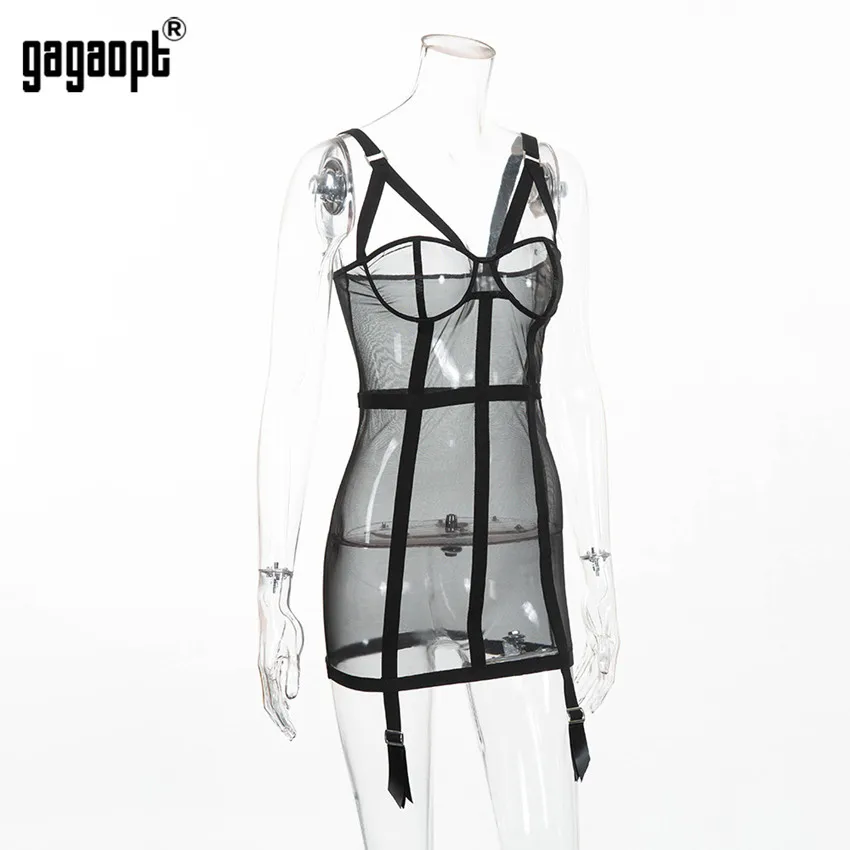 Very best Gagaopt 2019 Mesh Dress Women Sexy Dresses Perspective Black Fashion Mini Bodycon Dresses Club Vest