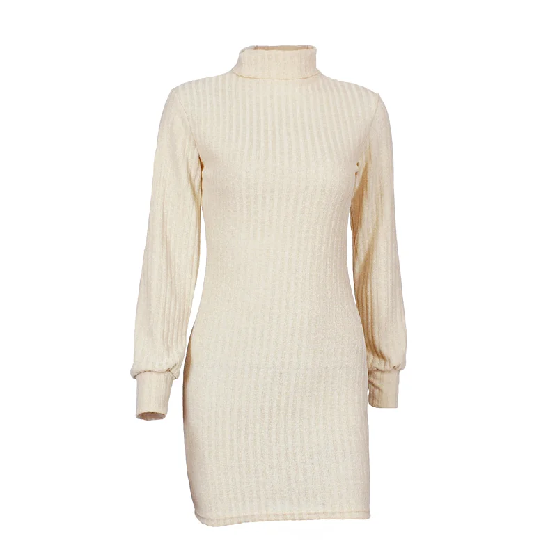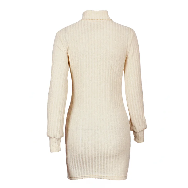 discounted BEFORW Long Sleeve Turtleneck Knitted Dress Women Casual Autumn Winter Sweater Dress Female Sexy El